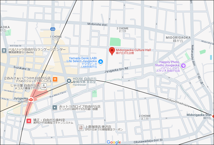 Midorigaoka Bunka Kaikan,Main Building : 2-14-23 Midorigaoka, Meguro-ku (No parking lot).